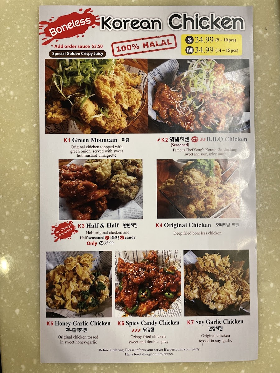 Welcome to Song Cook's Korean Chili, where we offer a delicious array of Korean specialties that will tantalize your taste buds. From our mouthwatering Green Mountain Chicken to the traditional jajang myun, kimch chicken tofu stew, and mulmandu, every dish is bursting with authentic Korean flavors. Don't miss out on our must-try items like the dolsot bibimbap, Spicy Ricecake, Chulpan Ojinguh, Honey Garlic Fried Chicken, Corn Cheese, and Black Bean Sauce. Be sure to also try our signature dishes like the Soy Garlic Fried Chicken, Kalbitang, Cheese Snow Chicken, and Half Black Bean Noodle Half Tangsuyuk. Come visit us at 1310 Dundas St E #5, Mississauga, ON L4Y 2C1, Canada, and embark on a culinary journey like no other!